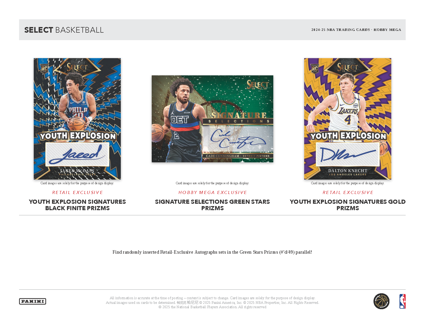 – Find randomly inserted Retail-Exclusive Autographs sets in the Hobby Mega- Exclusive Green Stars (#’d/49) parallel!