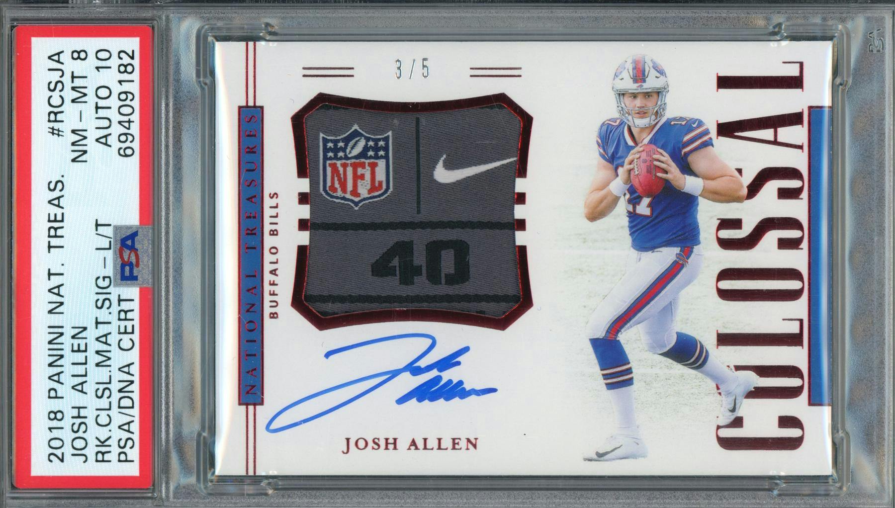 – 2018 National Treasures Josh Allen Colossal Laundry Tag Rookie Patch Auto /5 PSA 8