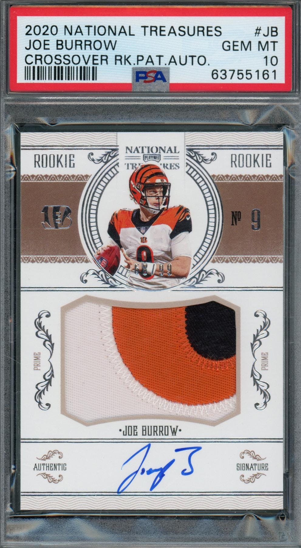 – 2020 National Treasures Joe Burrow Crossover Rookie Patch Auto /99 PSA 10