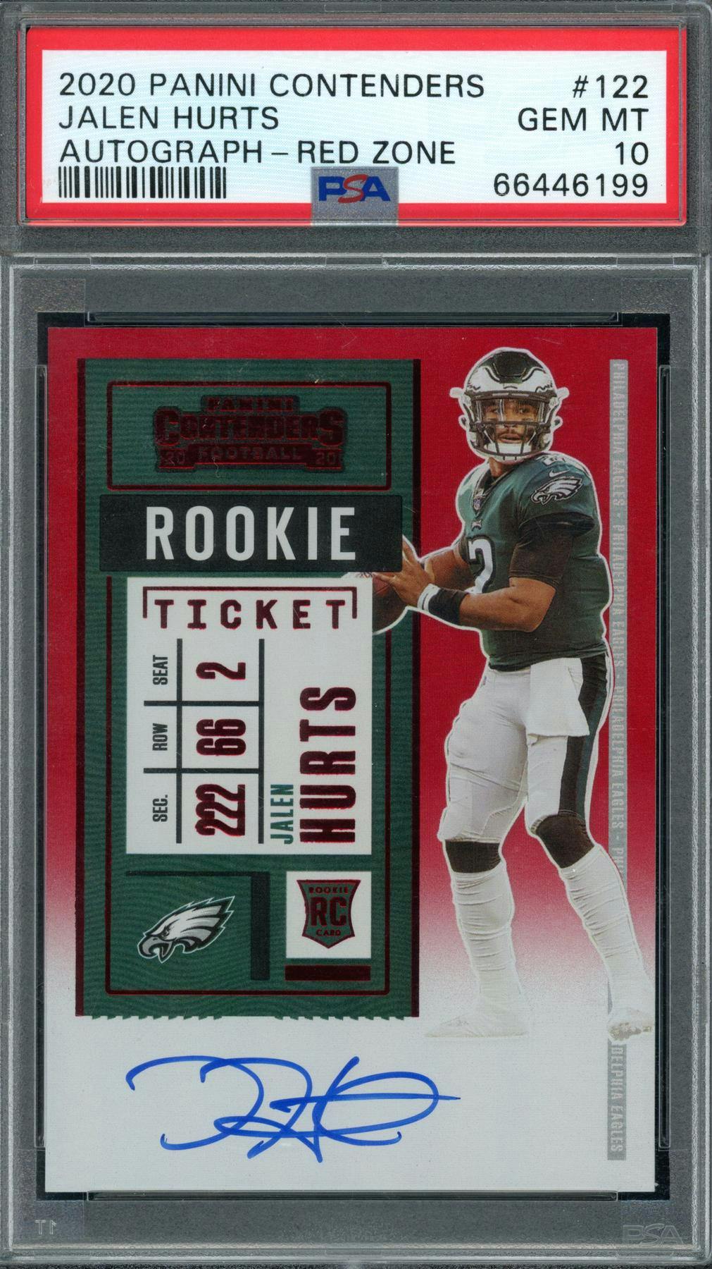 – 2020 Contenders Jalen Hurts Red Zone Rookie Ticket Auto PSA 10