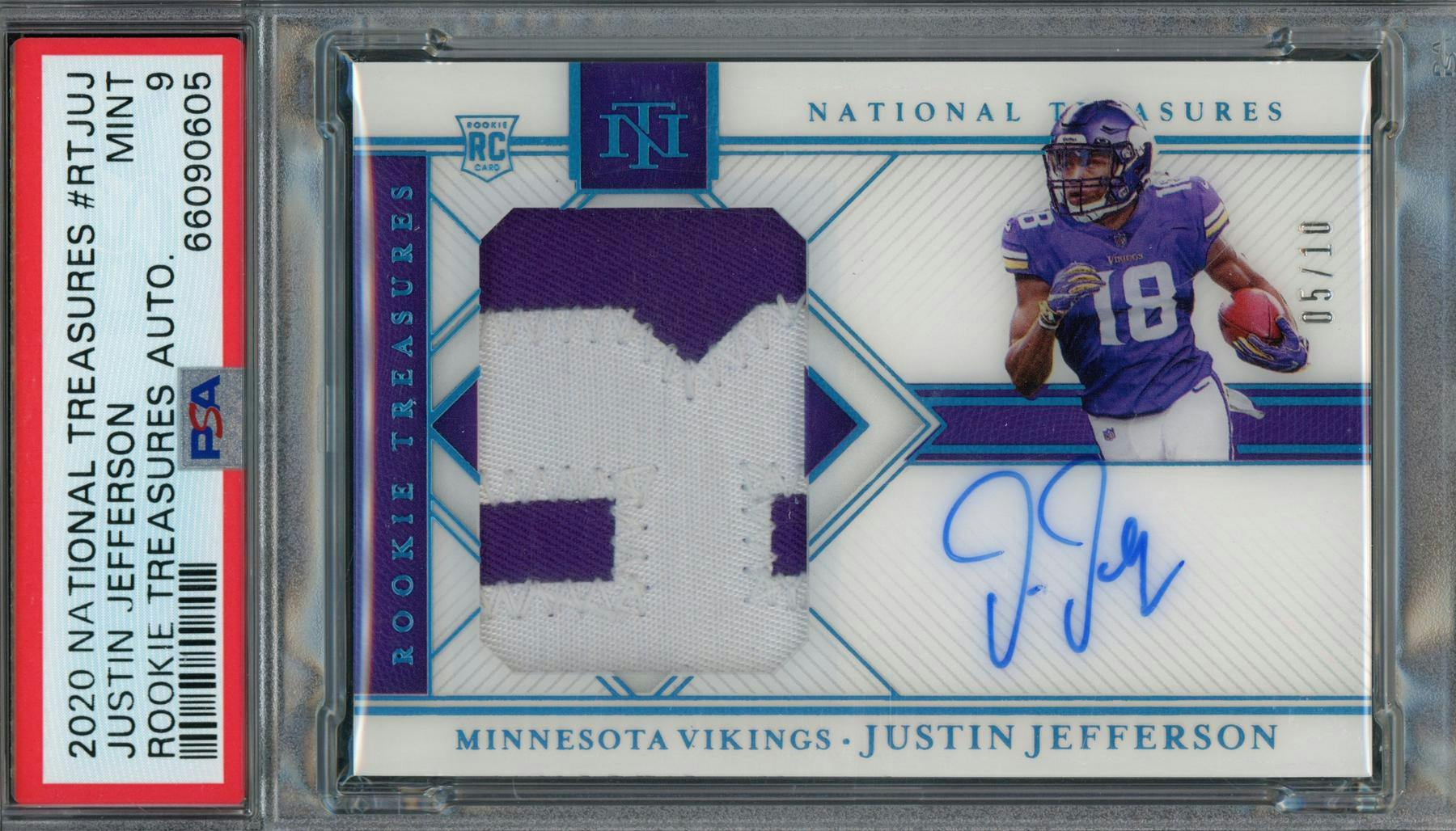 – 2020 National Treasures Justin Jefferson Rookie Patch Auto /10 PSA 9