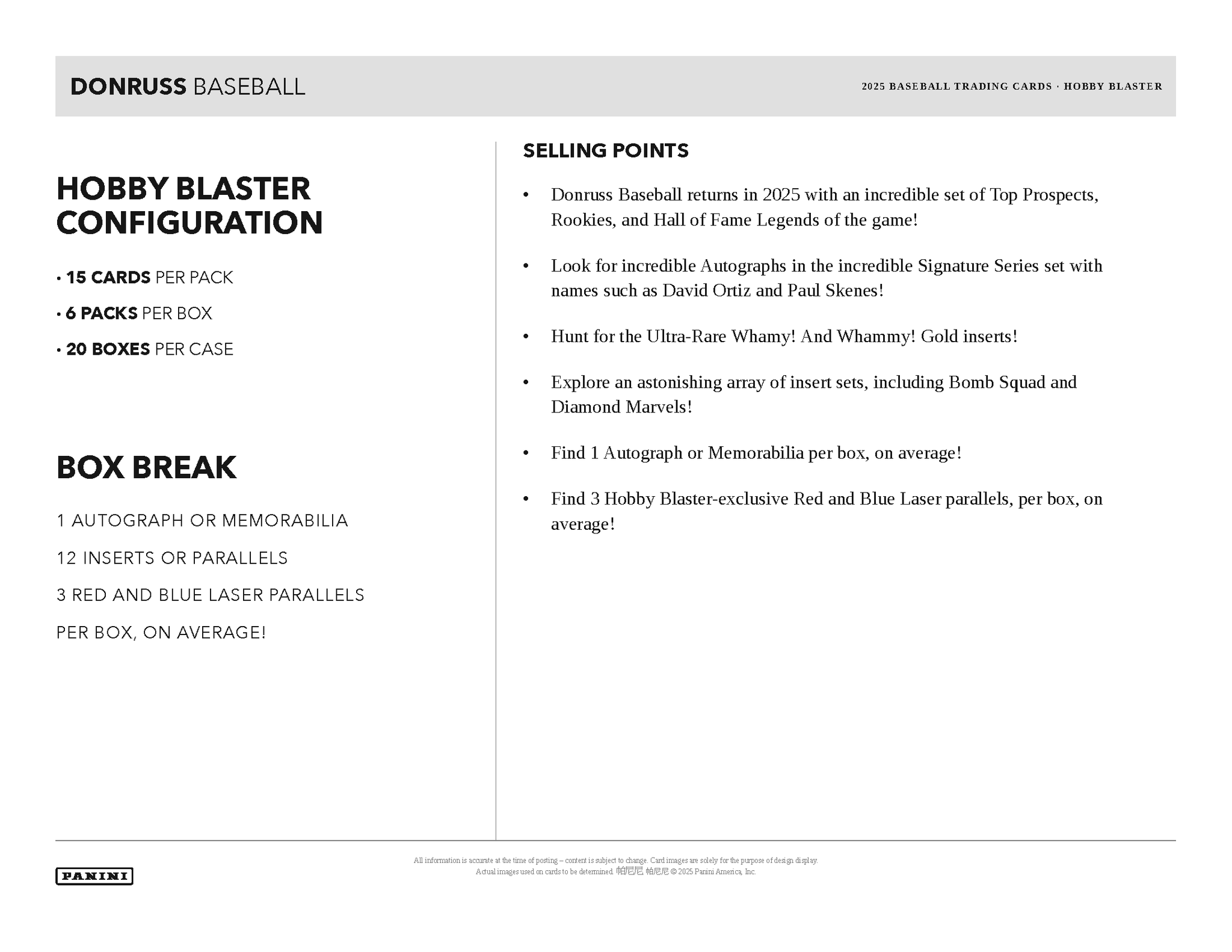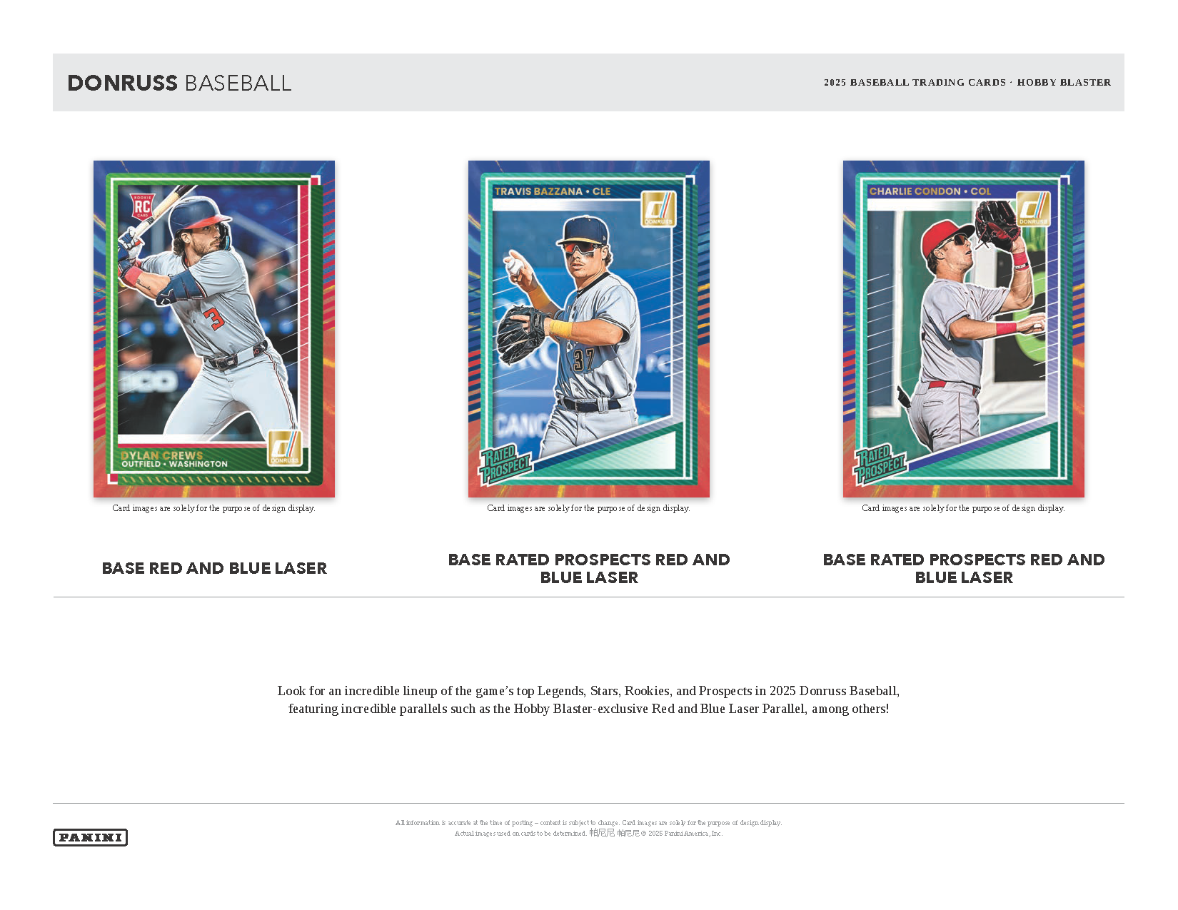 – Donruss Baseball returns in 2025 with an incredible set of Top Prospects, Rookies, and Hall of Fame Legends of the game!